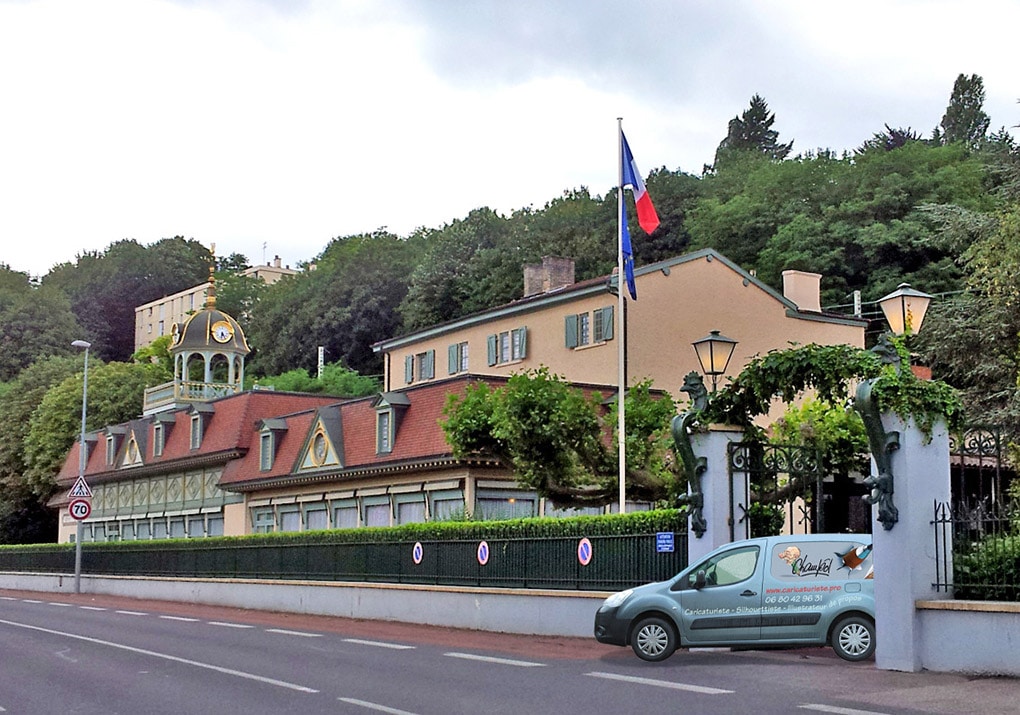 A Collonges, sur les bords de la Saône, se trouvent les deux adresses de Paul BOCUSE : le restaurant et 500 mètres plus loin l’Abbaye, où ont lieu les repas de groupes et autres mariages et banquets. Samedi dernier j’ai eu la chance d’opérer comme silhouettiste et comme caricaturiste lors d’un somptueux et sympathique mariage.